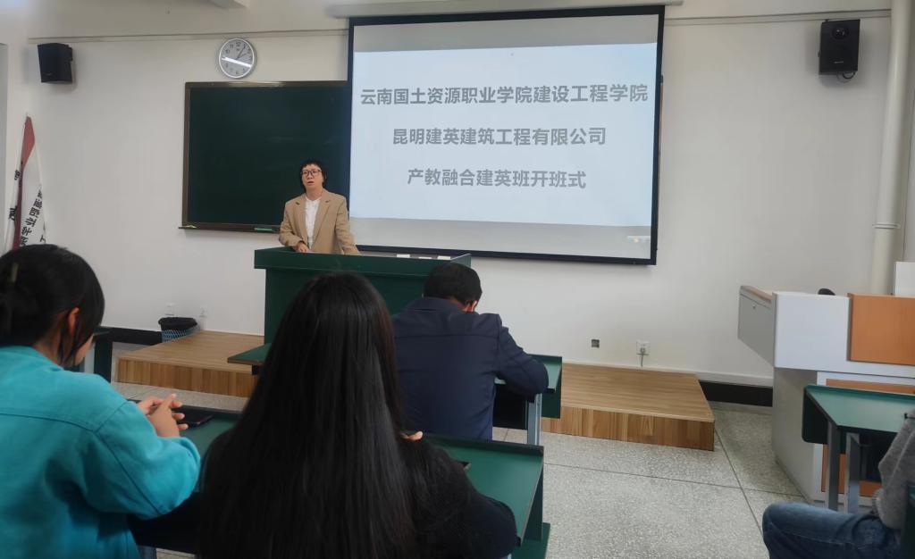 昆明建英建筑工程有限公司总经理陈艳为同学们明晰了学院组建“建英班”的目的,鼓励同学们积极关注未来就业趋势,及早对自己未来的就业做好规划和选择,树立就业意识,拓宽就业渠道,为自己日后的就业打牢坚实基础。