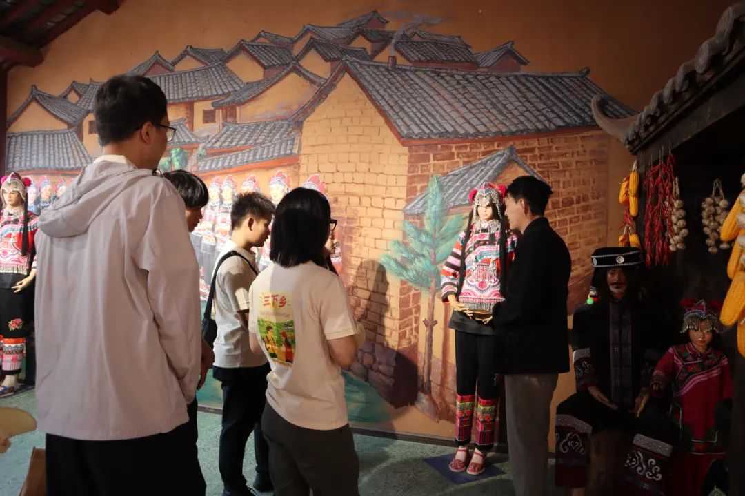 木高古村作为多民族聚居的村落,长期以来各民族和睦相处、互相帮助,是民族团结的生动缩影。实践团来到铸牢中华民族共同体意识主题教育馆,讲解员的讲解串联起馆内珍贵物件。白路镇发展轨迹、多样民族服饰,还有国家级非物质文化遗产彝族民歌、彝族酒歌,一一呈现,每一件展品都让队员们深切感受到“各民族像石榴籽一样紧紧抱在一起”的生动实践。队员们近距离感受了民族团结的深厚底蕴和实践成果,更强化了大家的中华民族共同体意识。