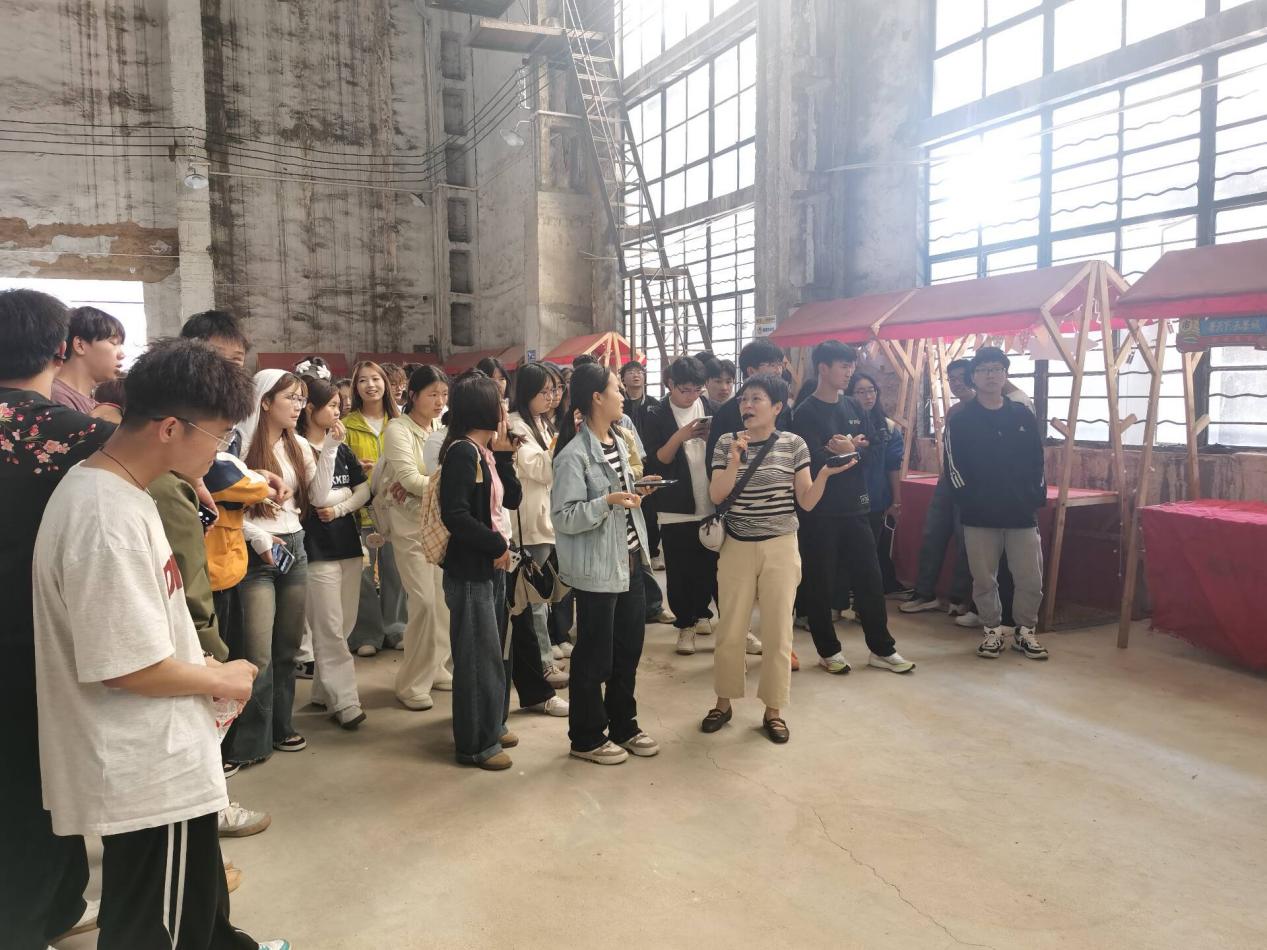 最后参观了老厂房重生的神犁拖拉机厂旧址。指导教师现场分析原厂房的整体布局及设备结构,使学生们清晰掌握了工业建筑所特有的设计理念与结构受力体系,同时厂房由衰败工业场地成功活化为城市文化休闲空间的案例,也为同学们拓展了建筑可持续利用的创新思考维度。