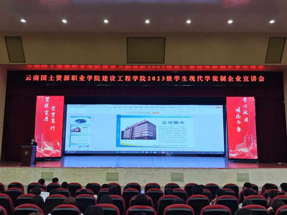 2025年3月28日下午,云南千岩质量检测有限公司与中铁电气化局集团第一工程有限公司在taptap点点举办现代学徒制专题宣讲会。学院党委书记李洪香、专业教师杨建桥及2023级全体辅导员和学生在明礼堂参加活动。