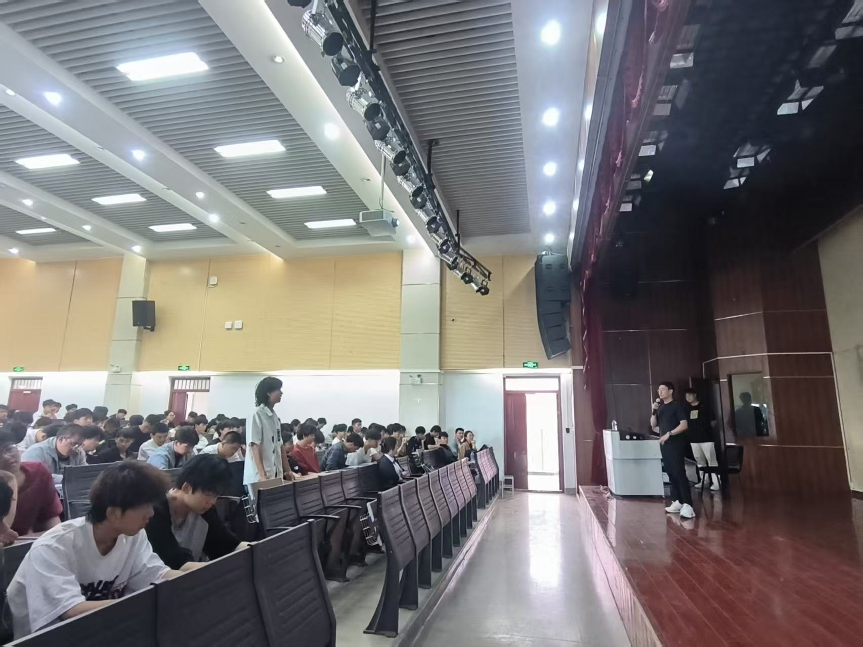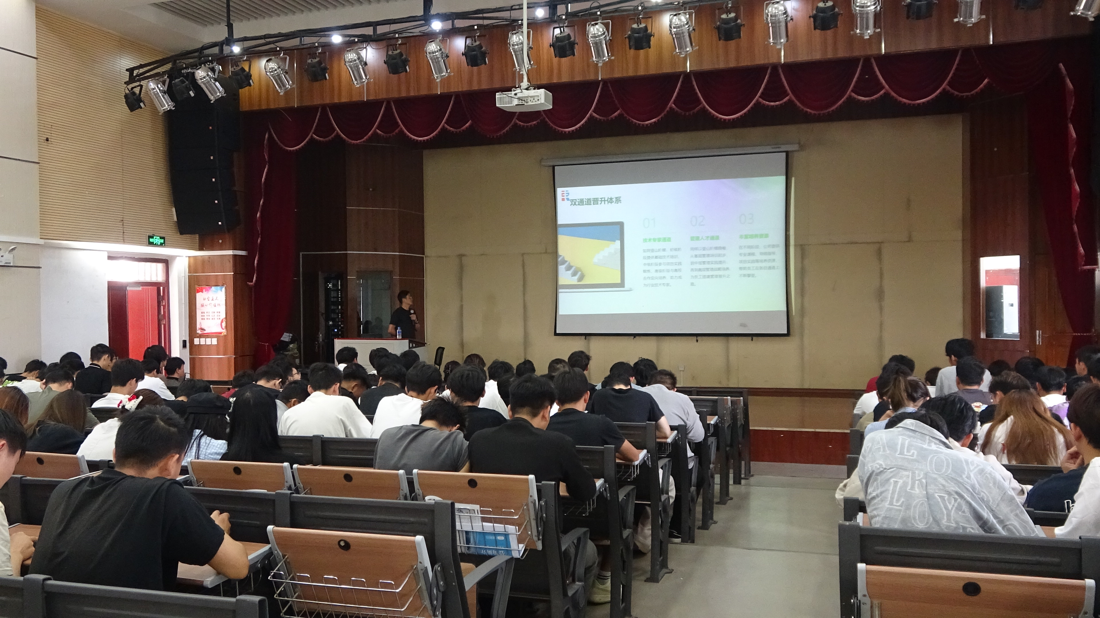 座谈会结束后,校企双方随即开展了人才对接活动。4月23日,企业代表在学校光荣讲堂举行专场招聘宣讲会,为2023级建筑材料工程技术专业学生提供了技术员、工程师等岗位,约120名学生参加了本次活动。