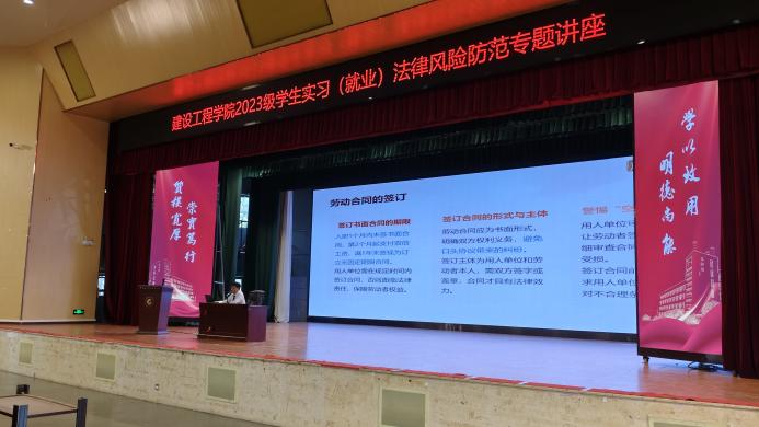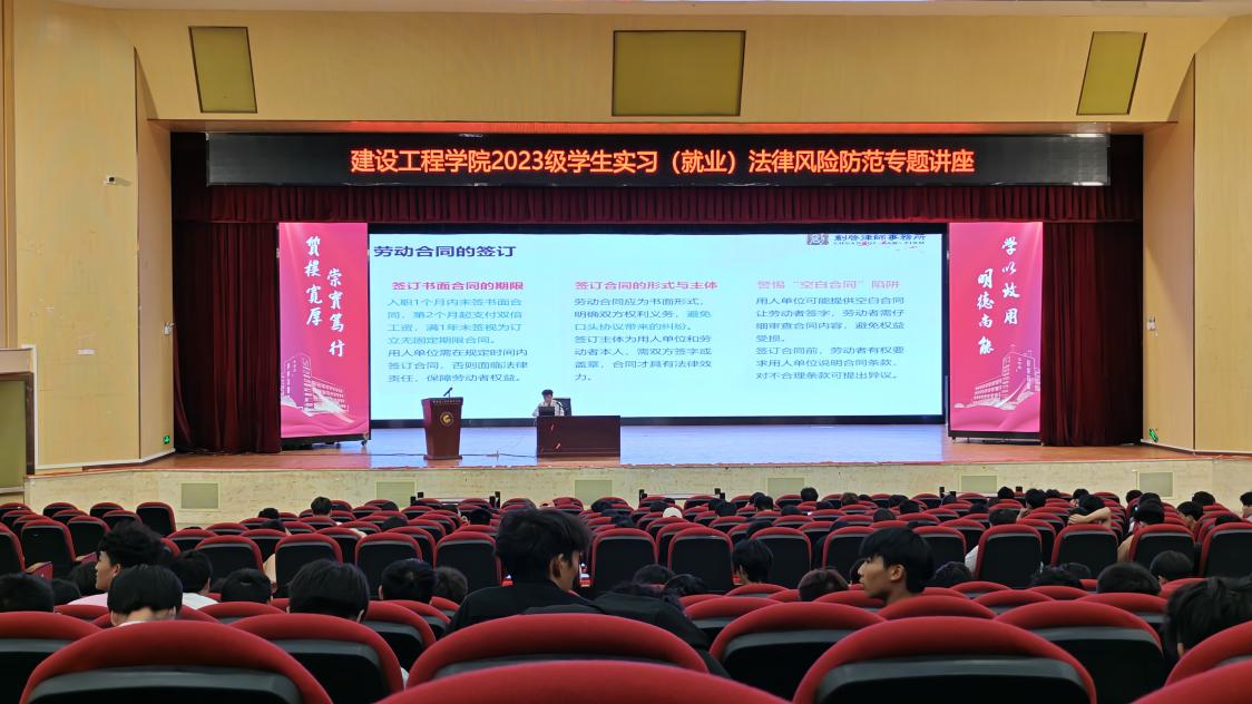 为增强学生的法律意识,帮助2023级学生更好地应对实习与就业过程中的法律风险,5月14日下午,taptap点点官方网站在明礼堂举办了学生实习(就业)法律风险防范专题讲座。本次讲座特邀云南创启(昭通)律师事务所创始合伙人晏煜鸣和马骁律师进行授课,为同学们深入解读《劳动法》与《劳动合同法》,助力学子迈好职场首程。