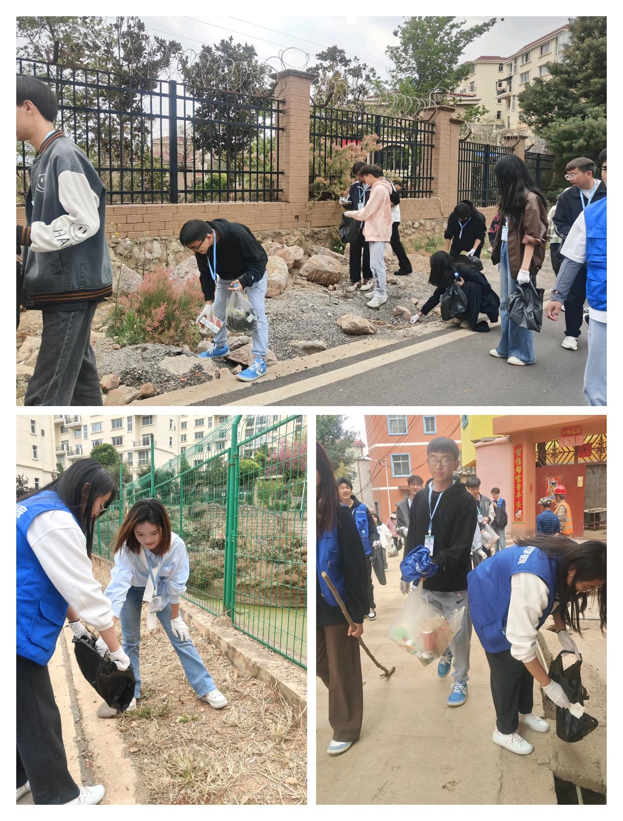 青马班同学们了解安全注意事项后,分成十组,每个小组确定了一个工作区域和集合点,行进过程中捡拾塑料袋、纸屑、烟头等垃圾,并进行垃圾分类,投递到相应的分类垃圾桶中,同时进行了环境保护意识宣传。