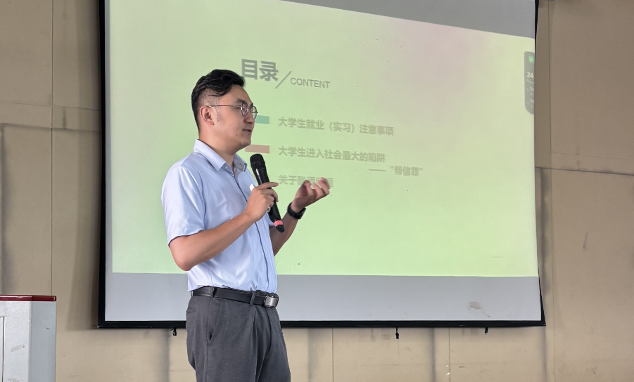 二是大学生就业(实习)应注意事项。强调道路交通安全、生产作业安全、用电安全、防溺水、照片信息安全、饮食安全、反诈安全等。