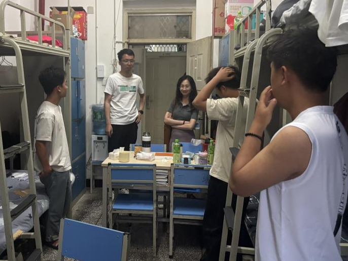 检查过程中,老师们重点查看了宿舍卫生、物品摆放、安全用电及文化氛围营造等方面,并与同学们亲切交流,了解他们的生活学习情况。张宁老师强调,良好的宿舍环境是学生健康成长的重要保障,各班级要严格落实宿舍管理制度,引导学生养成良好生活习惯。