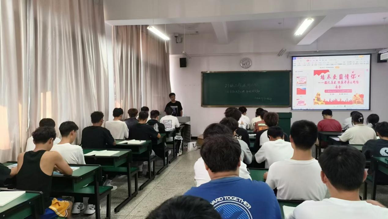 “培养爱国情怀——铭记历史继往开来”2024年是新中国成立75周年,在这个特殊的时间节点,各团支部通过观看纪录片,负责人讲解历史故事等方式来增强同学们的爱国情怀,也让同学们铭记历史、勿忘国耻,大力爱国主义精神,增强民族自豪感,在实现中华民族伟大复兴的征途中,不畏艰难,奋勇前行。