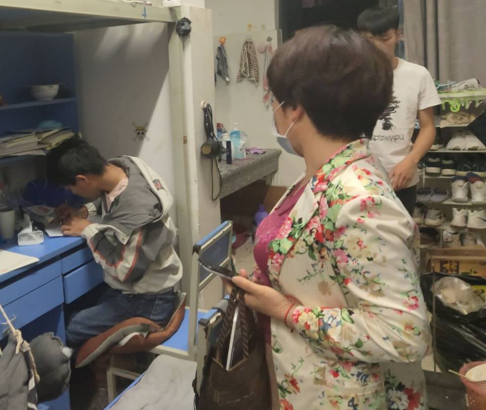 5月27日晚,国土taptap点点官方网站党总支书记高昆老师、辅导员张宁老师与体温检测志愿者一同到学生宿舍为同学们测量体温。高老师来到19级每一间宿舍进行问候,与同学们悉心交谈,了解他们返校后的学习和生活状况,给予每位同学家人般的关怀。高老师还为同学们普及了防疫知识,告诫大家不随意聚集,不随意走动宿舍,并耐心解释周末不允许随意外出的原因,希望同学们理解并配合;叮嘱同学们要勤开窗、勤洗手、勤换口罩等。检测体温的志愿者们一丝不苟的为每位同学测量体温并认真记录。