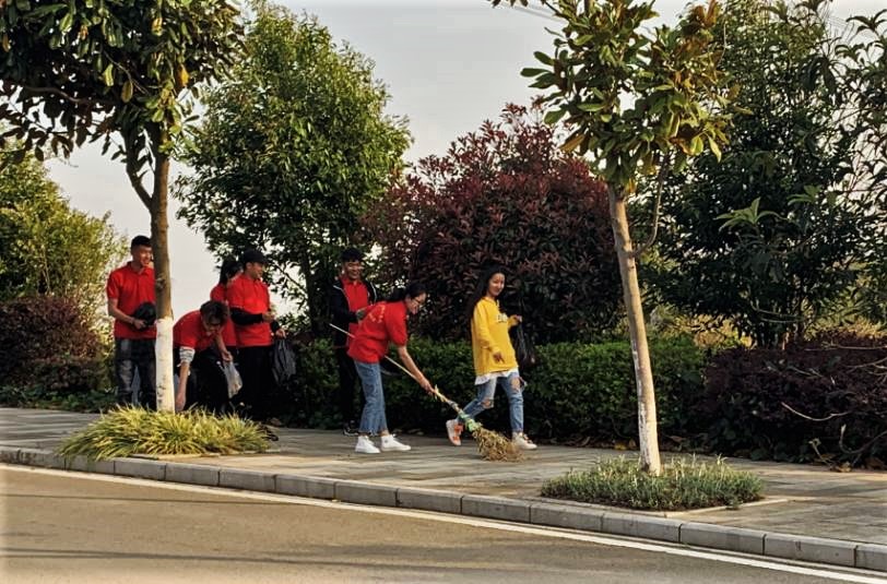 活动中,学生干部们有条不紊地开展清扫工作,他们分工合理,积极配合,一道道红色的身影穿梭在观山楼、勘物楼和学生活动中心周围,途经之处的垃圾都被一扫而光,经过一个多小时的努力,校园焕然一新。