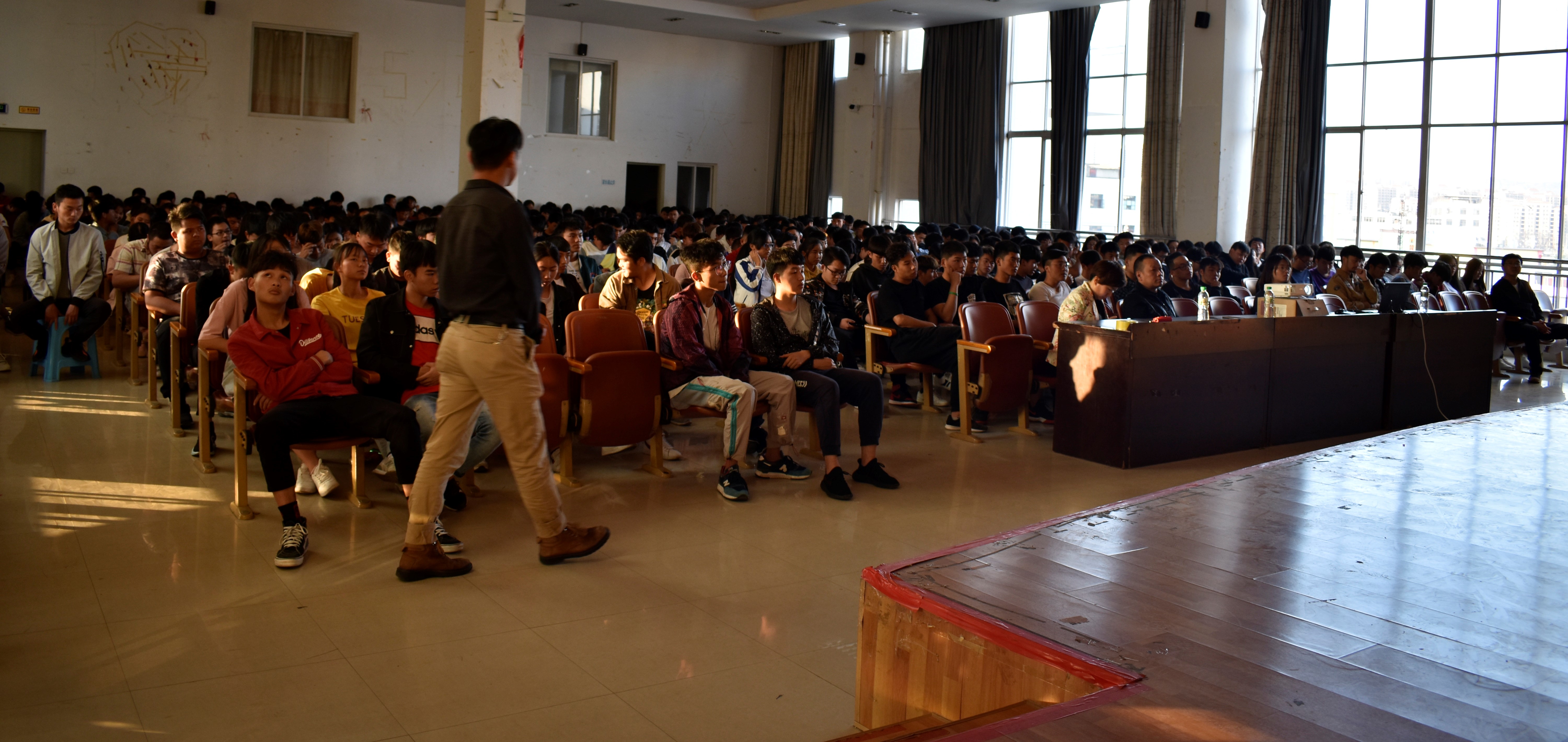 随后,彭明兴老师结合开学一个多月以来18级学风中存在的问题,提出3点要求:第一,严格执行校规校纪,明确奖惩措施,用校规校纪规范学风;第二,要坚持政风、教风、学风的有机统一和互动互进,以良好政风为前提,带动教风和学风,营造一个清正廉洁、和谐向上的良好校园氛围;第三,学院领导将加强对学风的监督管理,组建2018级学风检查组,每个班选派公正负责的同学加入到检查组,负责每天的学风检查。辅导员为具体负责人。