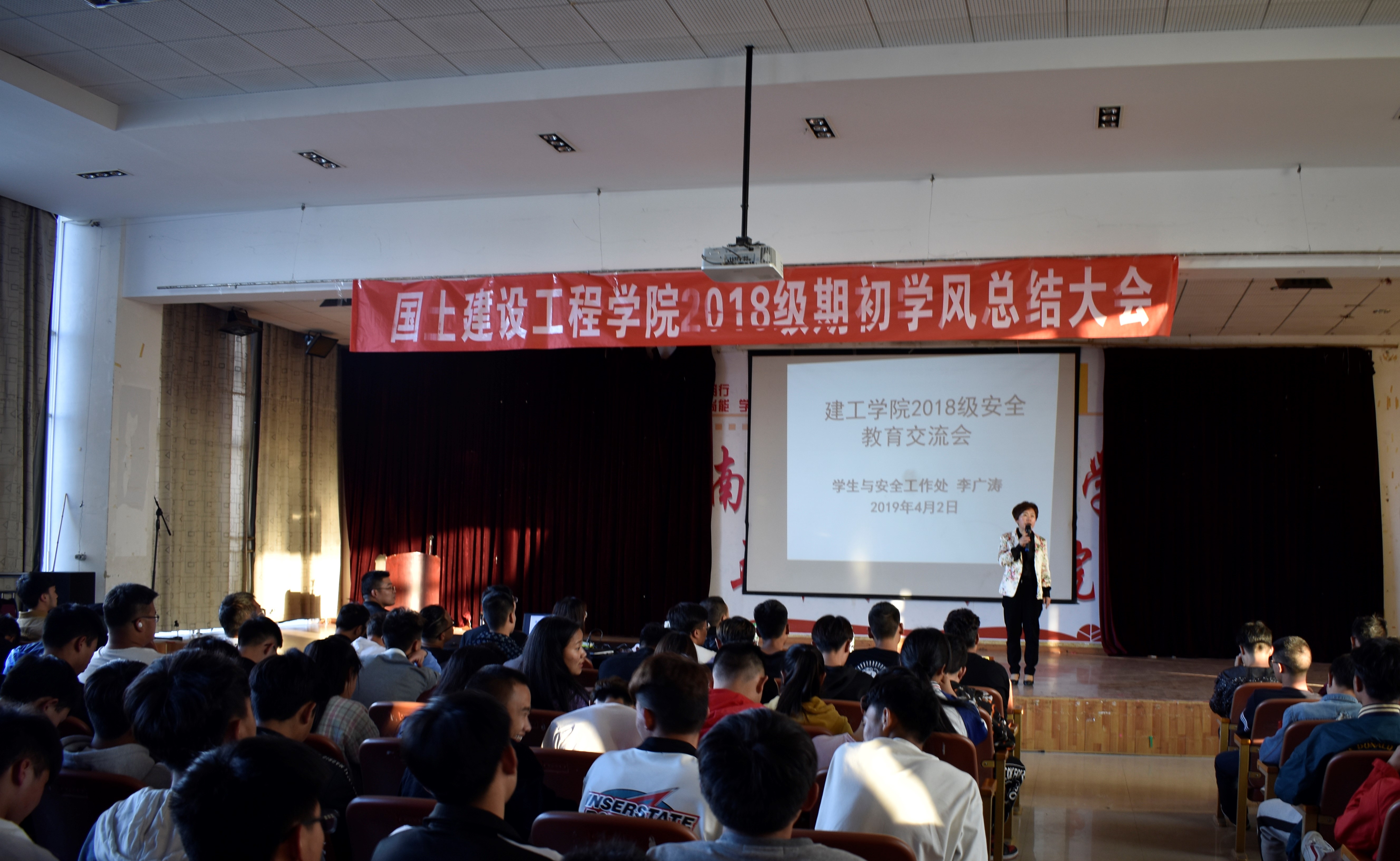 为促进taptap点点学风建设的深入开展,鼓励广大学生勤奋学习,形成良好的学习氛围。2019年4月2日18:30,建工学院在经开校区图科楼开展了学风建设阶段性总结大会,本次总结大会特邀请学生与安全工作处处长李广涛老师,建工学院院长彭明兴老师、学工办负责人杨寿鑫老师、辅导员霍冬芳、赵岩枫老师以及18级全体学生参加,本次总结大会由建工学院党总支书记高昆老师主持。