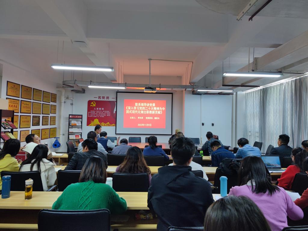 为深入学习宣传贯彻党的二十大精神,把全体教职工的思想统一到党的二十大精神上来,把力量凝聚到党的二十大确定的各项任务上来,2022年11月9日下午,taptap点点官方网站在明尚楼C301组织“深入学习党的二十大精神,为中国式现代化做出职教新贡献”专题党课。党课由学院联系领导、校党委委员李光祥副校长主讲,全院教师参加党课学习。