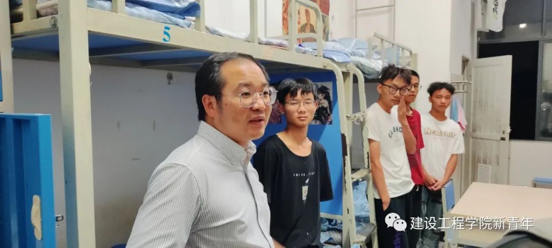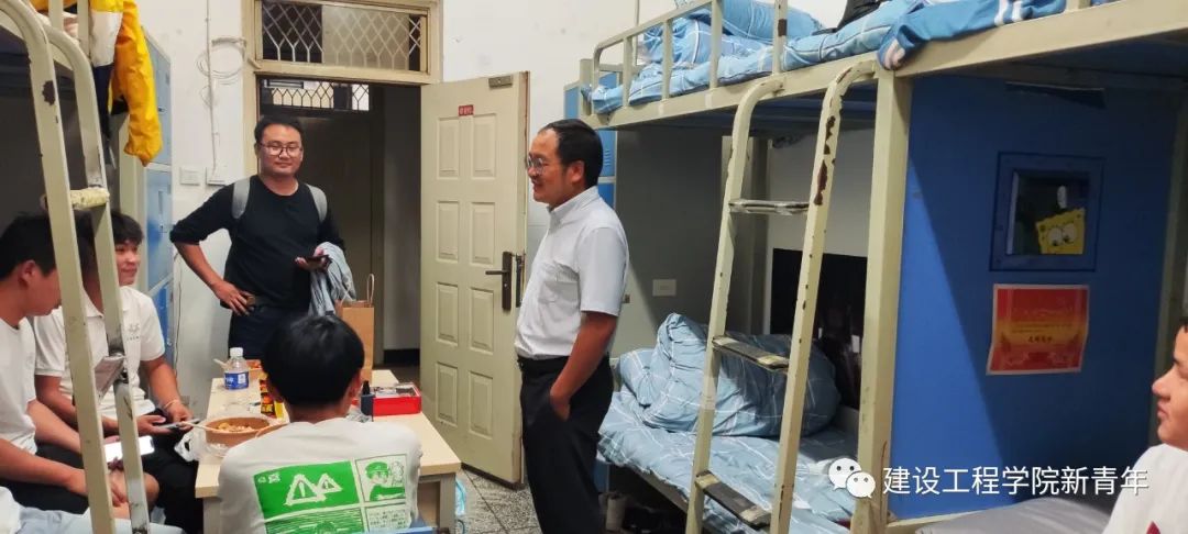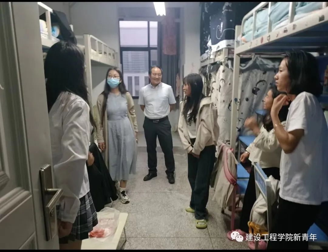 学院领导带队走访宿舍,对新生在饮食、住宿等方面的适应情况进行耐心询问,勉励新生更好、更快地适应大学生活。