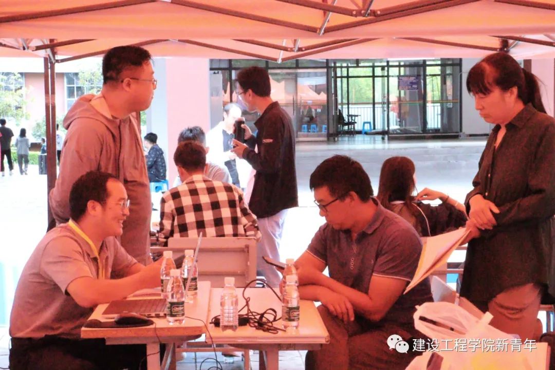 新生辅导员、班主任、班主任助理一直坚守在迎新现场,他们通力合作、齐心协力,确保了迎新工作顺利推进。