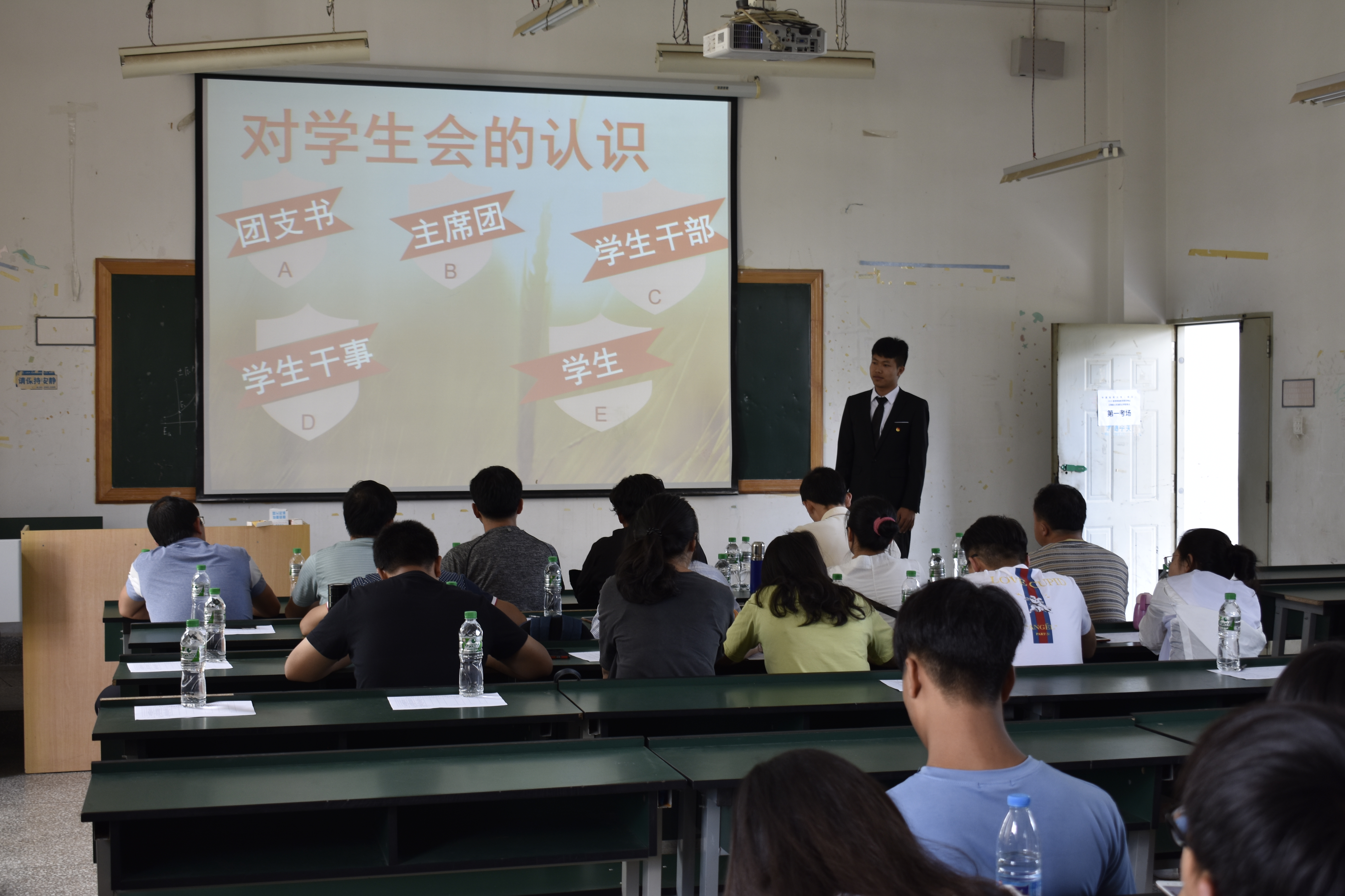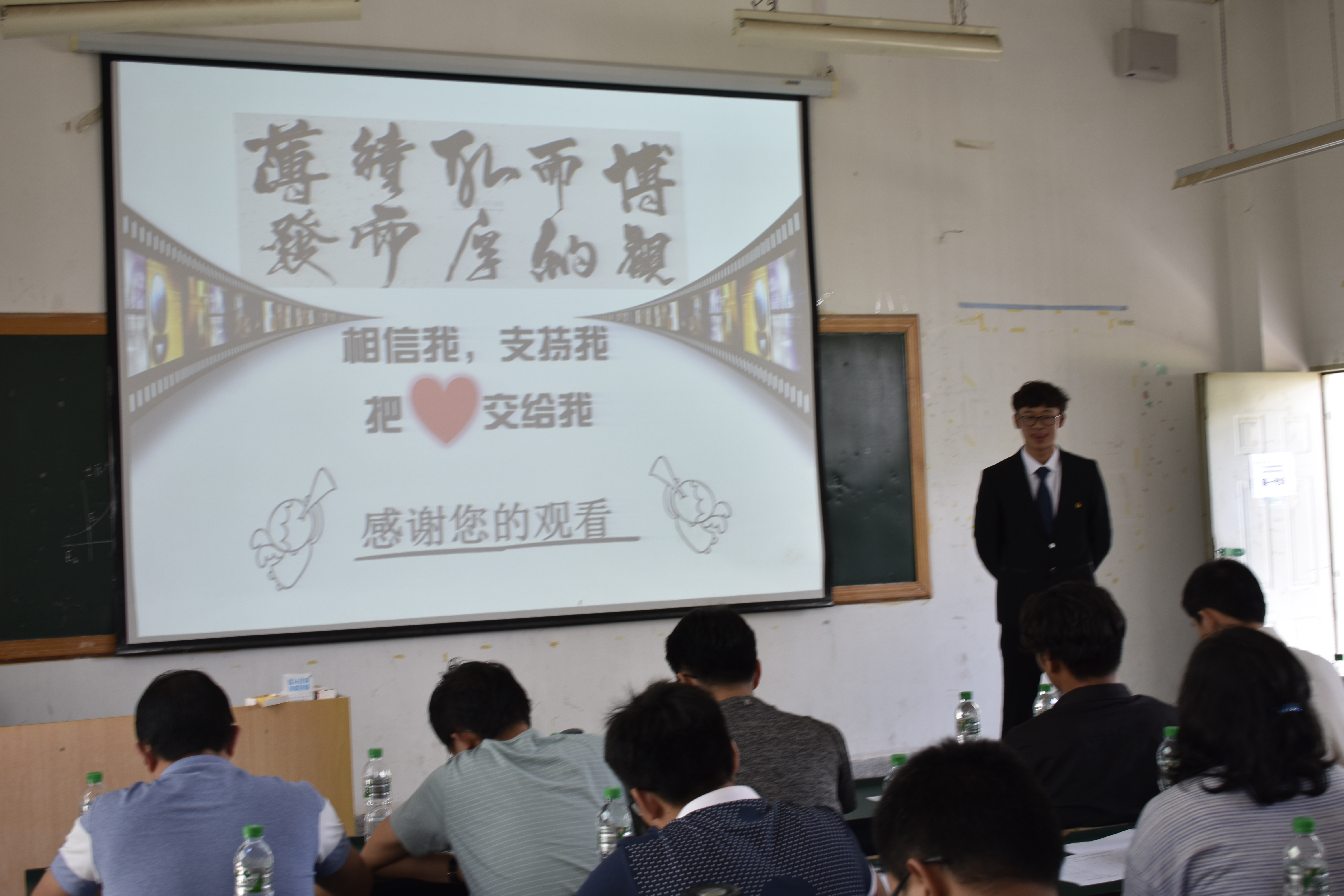 第二轮竞选环节于2019年6月14日13:30在经开校区101教室进行。杨寿鑫老师、霍冬芳老师、庞玲玲老师、17级学生会全体干部以及18级参加竞选的各位同学参加换届选举。竞选分为竞选演讲以及现场评委提问。首先17级学生会副主席陶宁发言。紧接着是各位竞选同学竞聘演讲、以往工作汇报及现场问答。评委的提问虽然尖刁,可同学们依旧自信从容地回答每一个问题。最后,杨老师作总结发言,杨老师充分肯定了同学们的付出,希望大家在接下来的工作中精诚团结、明确职责,提升自己、服务同学,营造良好风气, 推动学院学生工作再上新台阶。