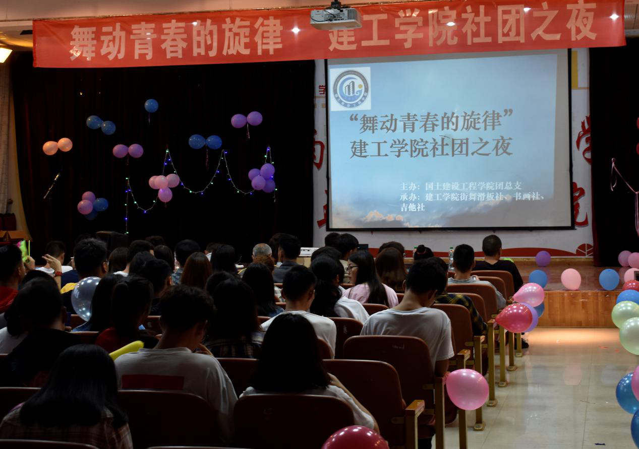 6月25日,由国土taptap点点官方网站团总支主办,建工学院街舞滑板社、书画社、吉他社承办的“舞动青春旋律”社团之夜活动在经开校区图科楼报告厅举行。国土taptap点点官方网站院长彭明兴老师、学工办负责人兼团总支书记杨寿鑫老师、学院部分专职教师、辅导员、社团全体成员参加了活动。